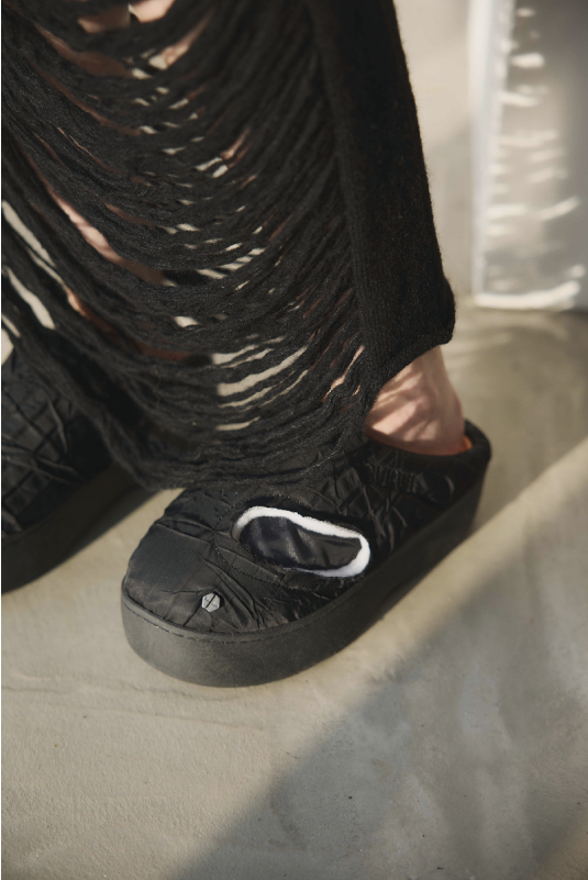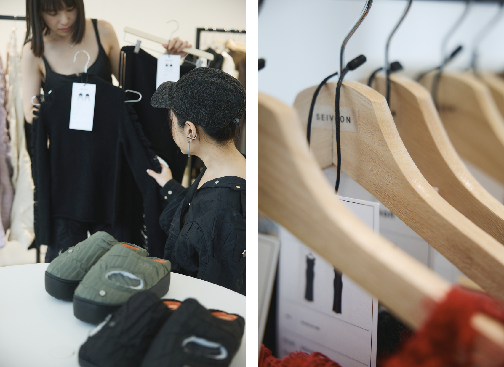 なるほど。言われてみれば、こちらの〈SUBU〉のシューズにも痕跡や傷跡を表現されていますね。〈セイヴソン〉の秋冬コレクションと〈SUBU〉のコラボシューズは相性がよさそうですね。