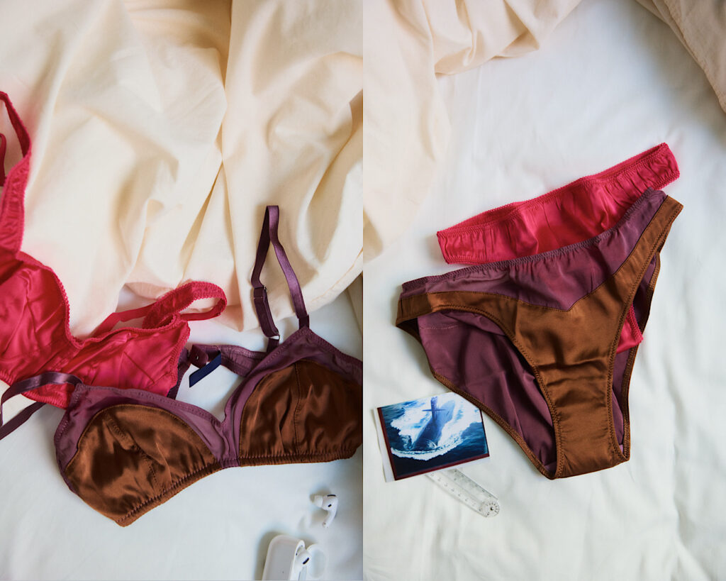 (右)ビアトリス ブラレット¥23,100、グリアー トング¥13,500/すべてアラクス(the lingerie and her flim)
