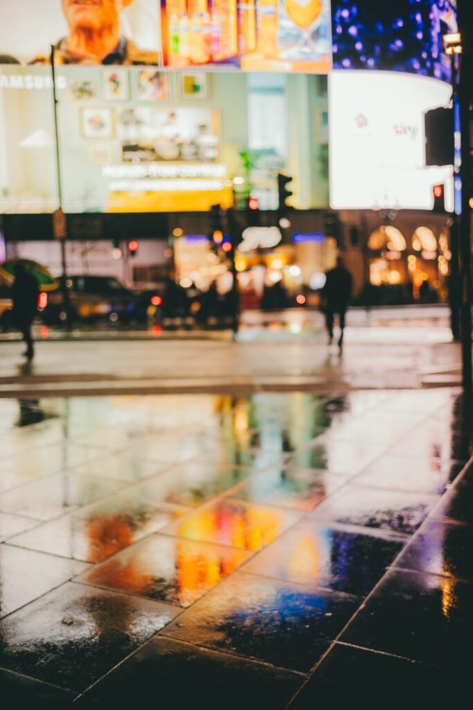 雨にぼやける夜の街は、メガネを外して見る景色と似ている。私の好きな、きれいな景色。日常と非日常の狭間で、たっぷりとシロップを浸したスポンジプディングみたいに、光がじゅわっと染み込んでいく。だから雨の日も、よいお天気。