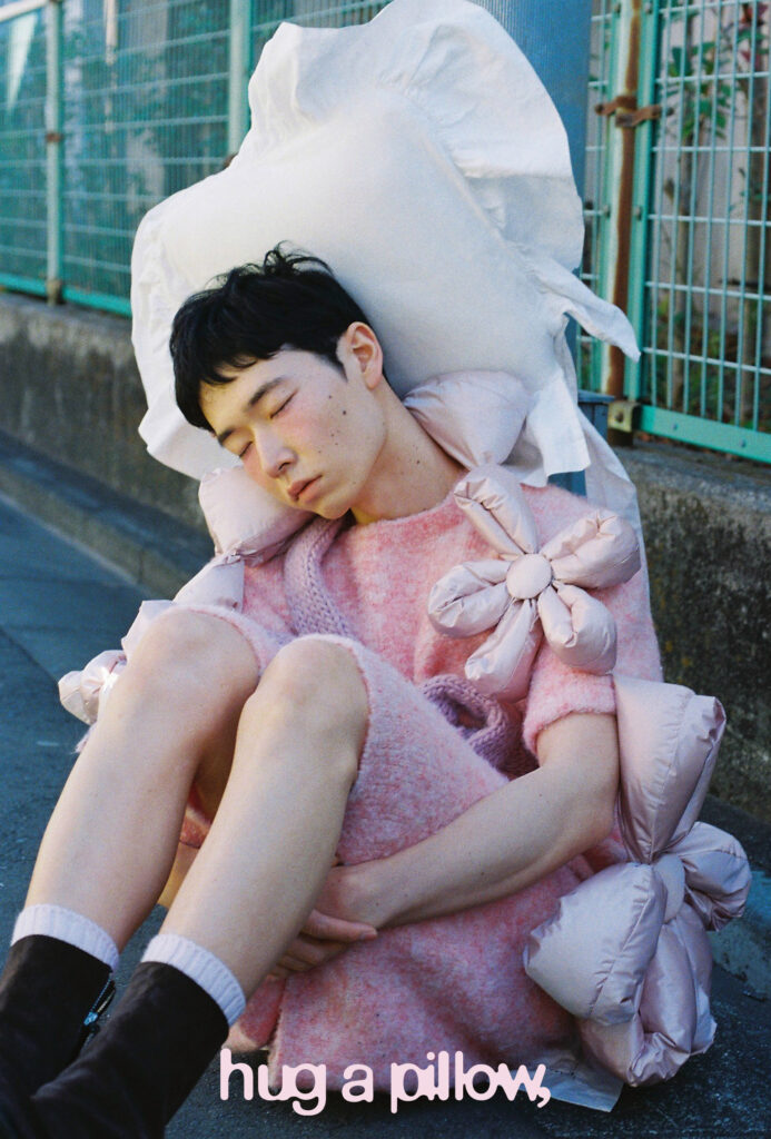 かつて「YUKIの衣装を作りたい」と願った純粋な衝動は、形を変えて今年、永瀬さん自身のプロジェクトをスタートさせる原動力となっている。スタイリストの友人と始めた「hug a pillow,」は、「10代の頃から道路で寝たい願望があった」と笑う彼女の、“好き”が詰め込まれた新しい活動だ。