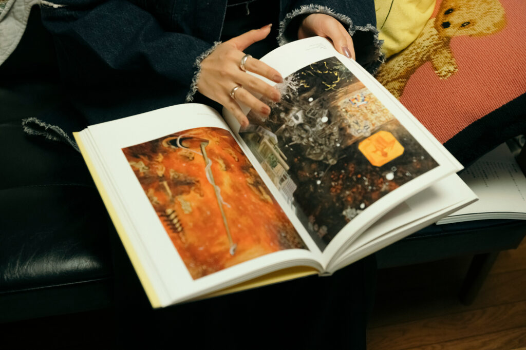アートディレクター・永瀬由衣さんが作る世界観の根底には、幼少期から父に導かれるように触れてきた、濃密なカルチャーの記憶が流れている。大切に保管されている横尾忠則の図録『冒険王・横尾忠則』は、まさにその好奇心の象徴だ。