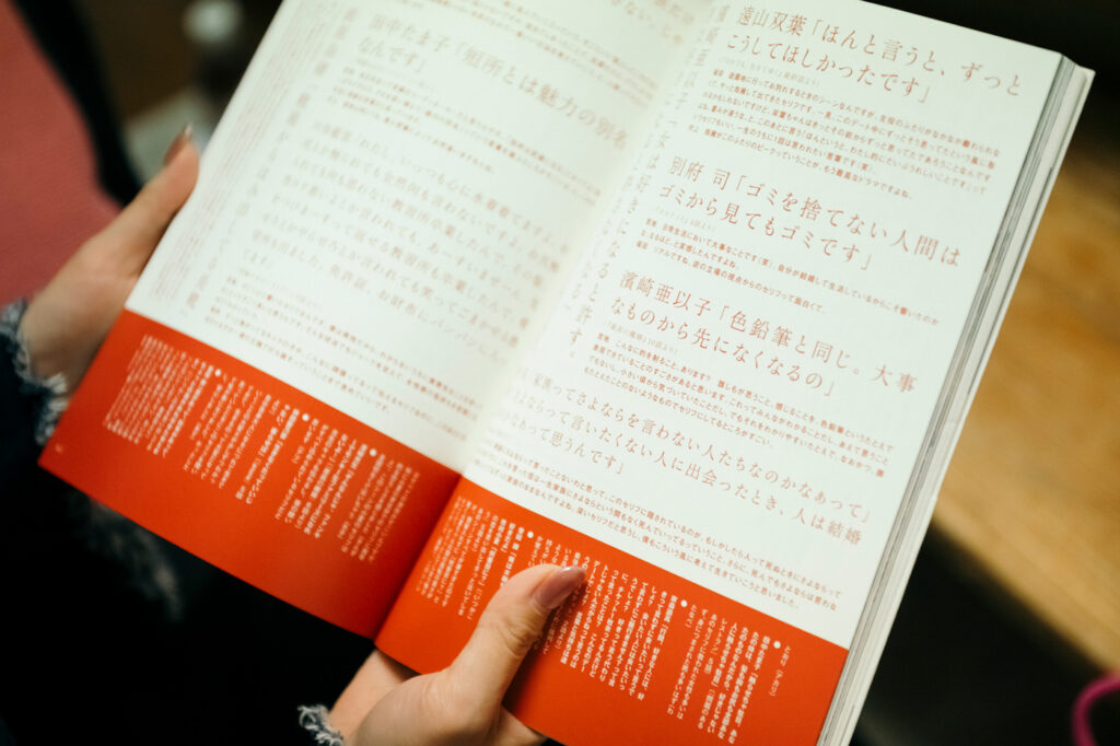 「セリフの長回しが心地よく、登場人物に悪者がいなくてみんな愛おしい。坂元さんの作品の魅力は、独特の言い回しが心に残る名ゼリフの数々だと思うんです。この本の中でも、セリフが並んでいるページが特に好きで。デザインも可愛いんです」