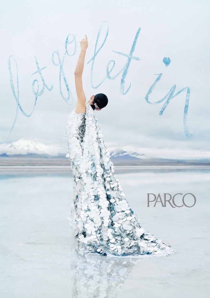1969年の創業当時から、ファッションやアートを起点に時代をビビッドに切り取ってきた「PARCO」の広告ビジュアル。シーズンごとに気鋭のクリエイターを起用し、硬軟自在にコンセプチュアルなストーリーを紡いできた。この春は“Let go, Let in”をテーマに季節の移り変わりとともに心が動き、いつしか重くなったものを解放することで新しい自分に出会えるといったポジティブなメッセージを表現。湖の女神をメインキャストとし、変化をいとわずしなやかに次の一歩を踏み出す人々に寄り添い、変われることの喜びを描き出した。クリエイティブディレクターはメゾンブランドのキャンペーンを手がけるなど、ジャンルを問わず世界で活躍するフォトグラファー、クリエイティブディレクターのキン チャン コエデルが担当。スタイリストは日本初起用となる『W Magazine China』のアートディレクター、スタイリストを務めるジペン・リー、音楽はシガー·ロスのヨンシー、コレオグラファーはブロードウェイ作品への出演や振り付けを手がけるポール・マックギルにオファー。“天空の鏡”と称される標高約3,100mのチャカ塩湖をステージに、世界各国のトップクリエイターたちが創り上げたビジュアル。さすがは「PARCO」、相変わらず感性がビシバシ刺激される!
