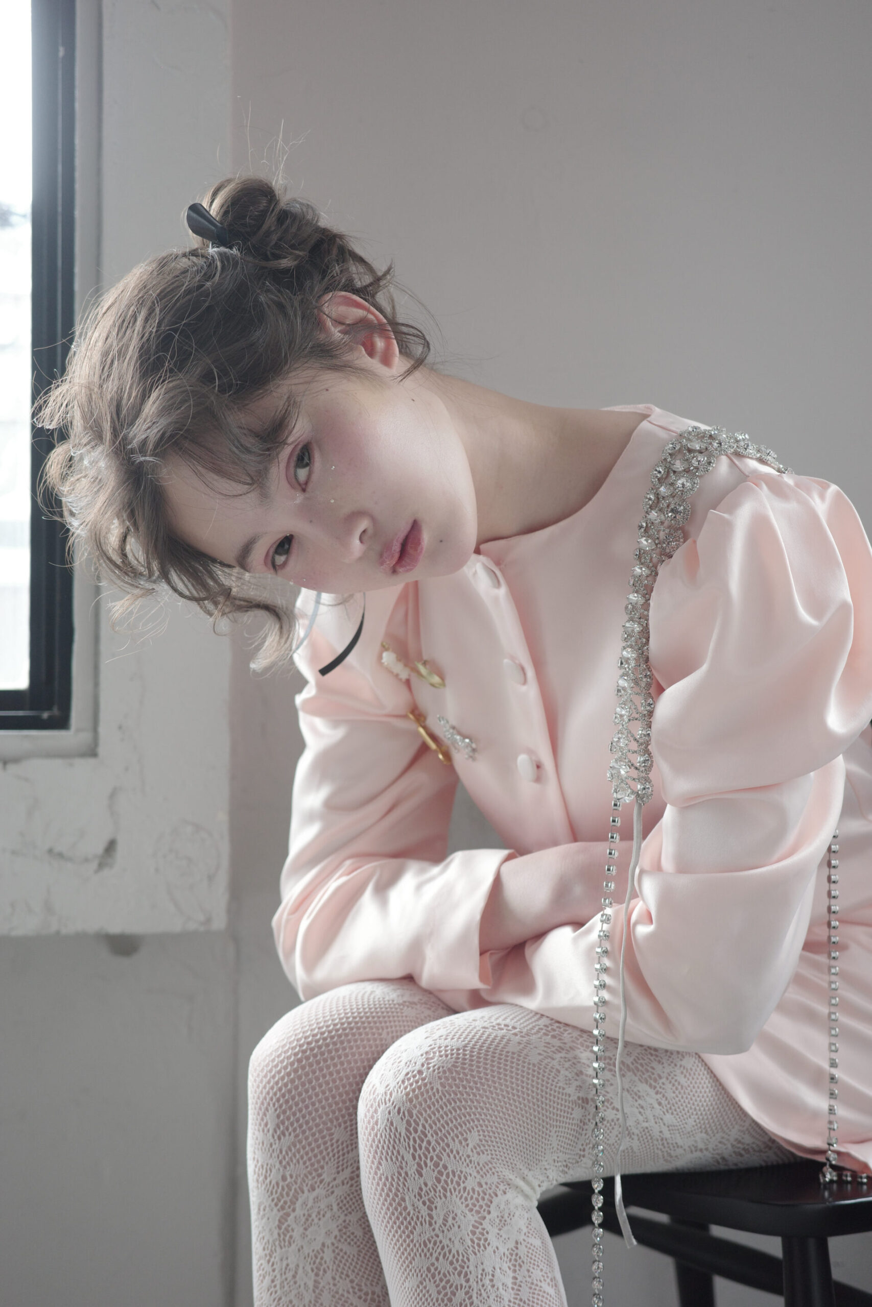 「童心に帰らせてくれる“かわいい”ものが好きなんですが、年齢を重ねるにつれて世間体を少し気にし始め、身にまとうものを選ぶように。だけどやっぱり好きなものと正直に向き合っている時の自分はキラキラしているし、春に向けてワクワクする気持ちと似ているような感覚で、自分の好きを実直にスタイルに込めました」。いつもは表には出さない挑戦的な想いを“LIGHT HEART GIRL”にのせて表現してくれた。