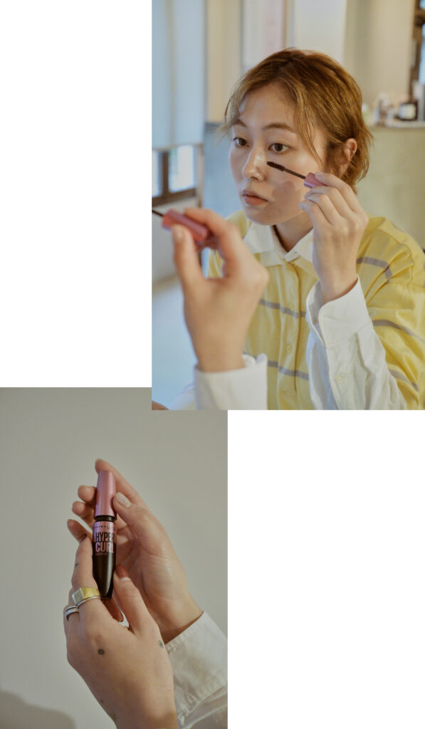 「ブラウンマスカラを使うと透明感が出るので気に入ってます♪ 下まつ毛だけにつけて、少しでも白目が大きく見えますように……! 」